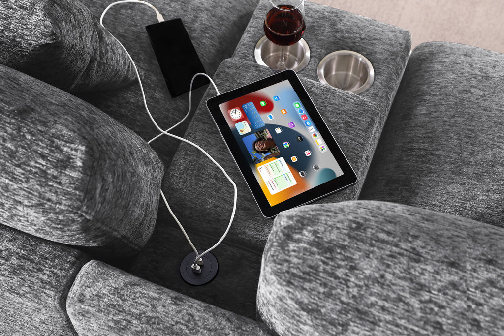 Celine - Chenille Fabric Corner Sectional Sofa With Right Facing Chaise, Cupholders, And Charging Ports - Dark Gray