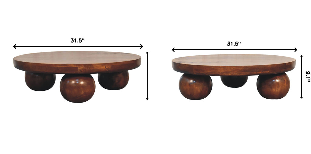 - Chestnut Central Ball Table - The Chestnut Coffee Table, crafted from 100% solid mango wood, exudes elegance with its rich hue and intricate grain patterns. Supported by distinctive ball feet, this table combines durability with a timeless design. Its warm chestnut finish seamlessly complements various decor styles, making it both a functional and stylish centerpiece for any room.