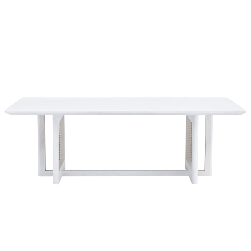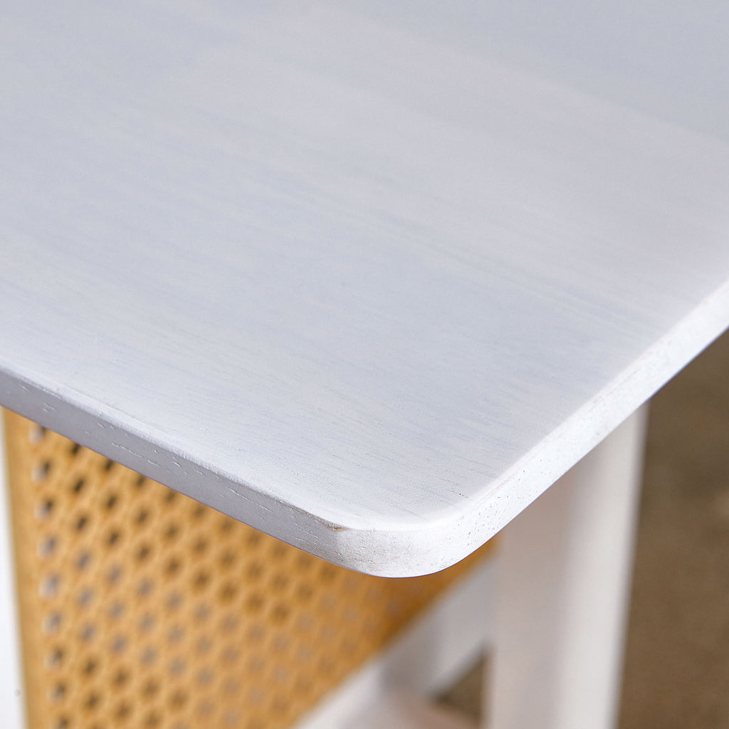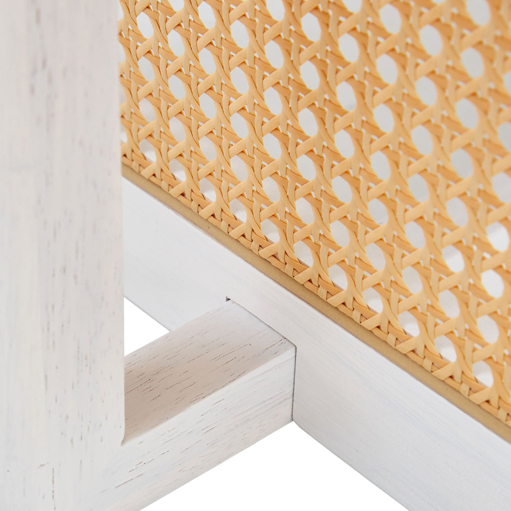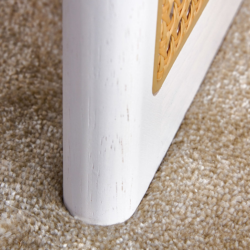 Chinese Style Solid Wood And Imitation Rattan Coffee Table, Rectangular Low Table For Small Living Rooms - White