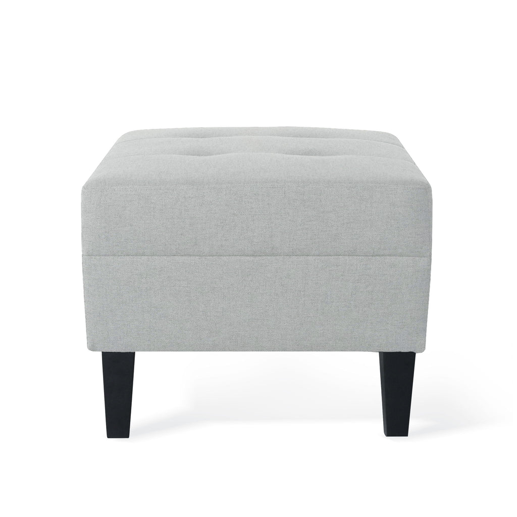 Classic Ottoman With Cushioned Top And Birch Wood Legs - Gray