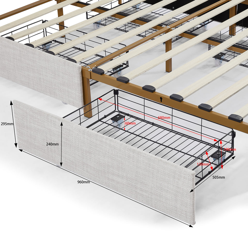 Classic steamed bread shaped backrest, metal frame, solid wood ribs, with four storage drawers, sponge soft bag, comfortable and elegant atmosphere, light gray, Full size, F bed