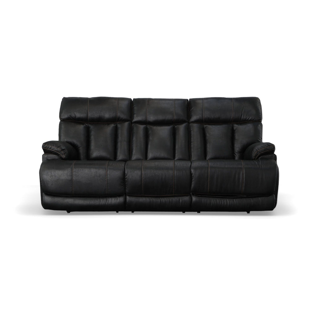 Treat yourself to superior comfort with the Clive Power Reclining Sofa with Power Headrest and Lumbar. Lofty and eye-catching with its heavy thread stitching and a channeled back cushions, this clove brown fabric sofa delivers premium in comfort with pillow pad arms, a high-density seat cushions, and extended footrests to accommodate taller users. The power button allows you to independently adjust the headrest, footrest and lumbar support on each end seat. Lay-flat recline allows you to recline back and stretch out for a snooze. And with Flexsteel's patented Blue Steel Spring™ seat system at the heart of each seat, this sofa is built for lasting, everyday use.