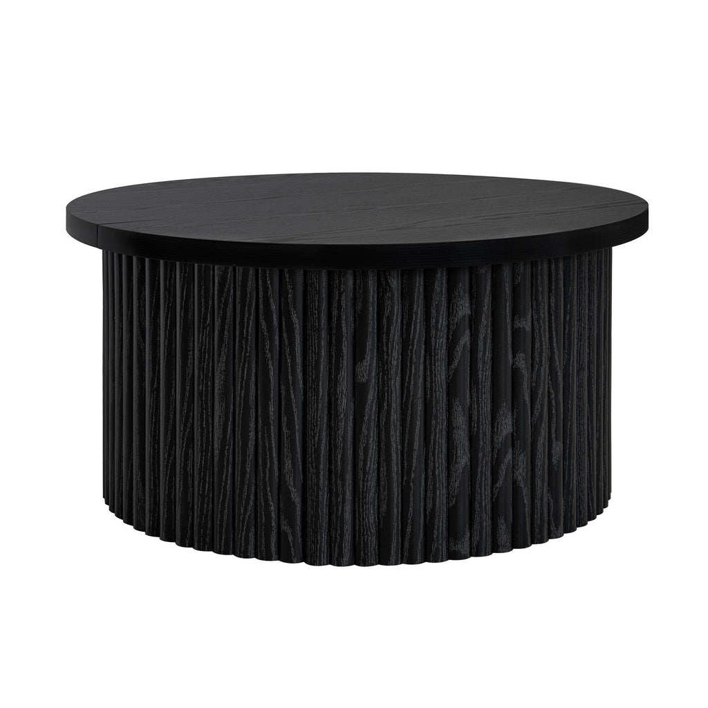 - Modern Design: Features a round shape with unique vertical wood grain stripes, offering a chic and stylish addition to your living room.