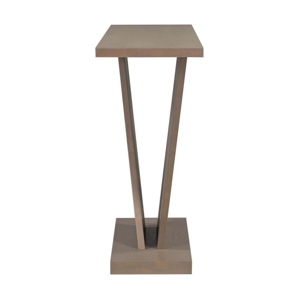 Console Table With V Shape Base / Natural Wood Veneer, Sculptural Entryway Accent - Taupe