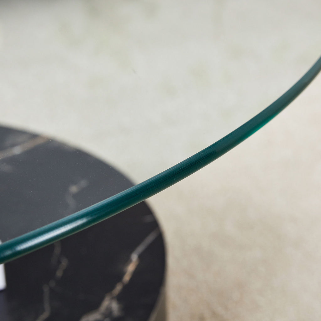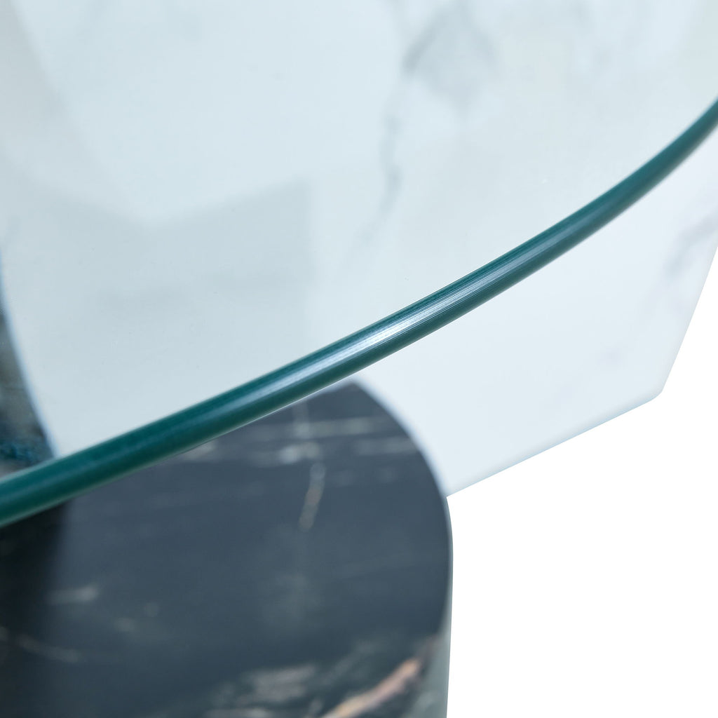Contemporary Artistic Double Layer Coffee Table And Marble Collision Tempered Glass Top - Transparent / White / Black