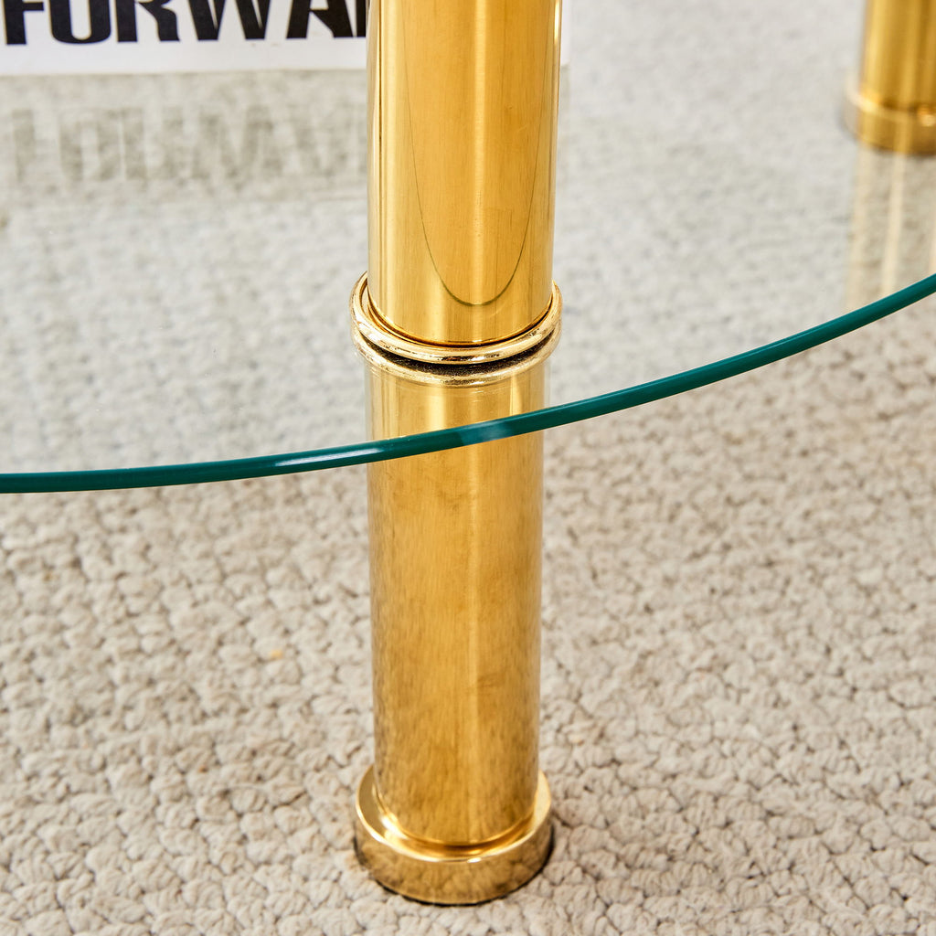 Contemporary Minimalist Double Layer Tempered Glass Coffee Table - Gold / Transparent