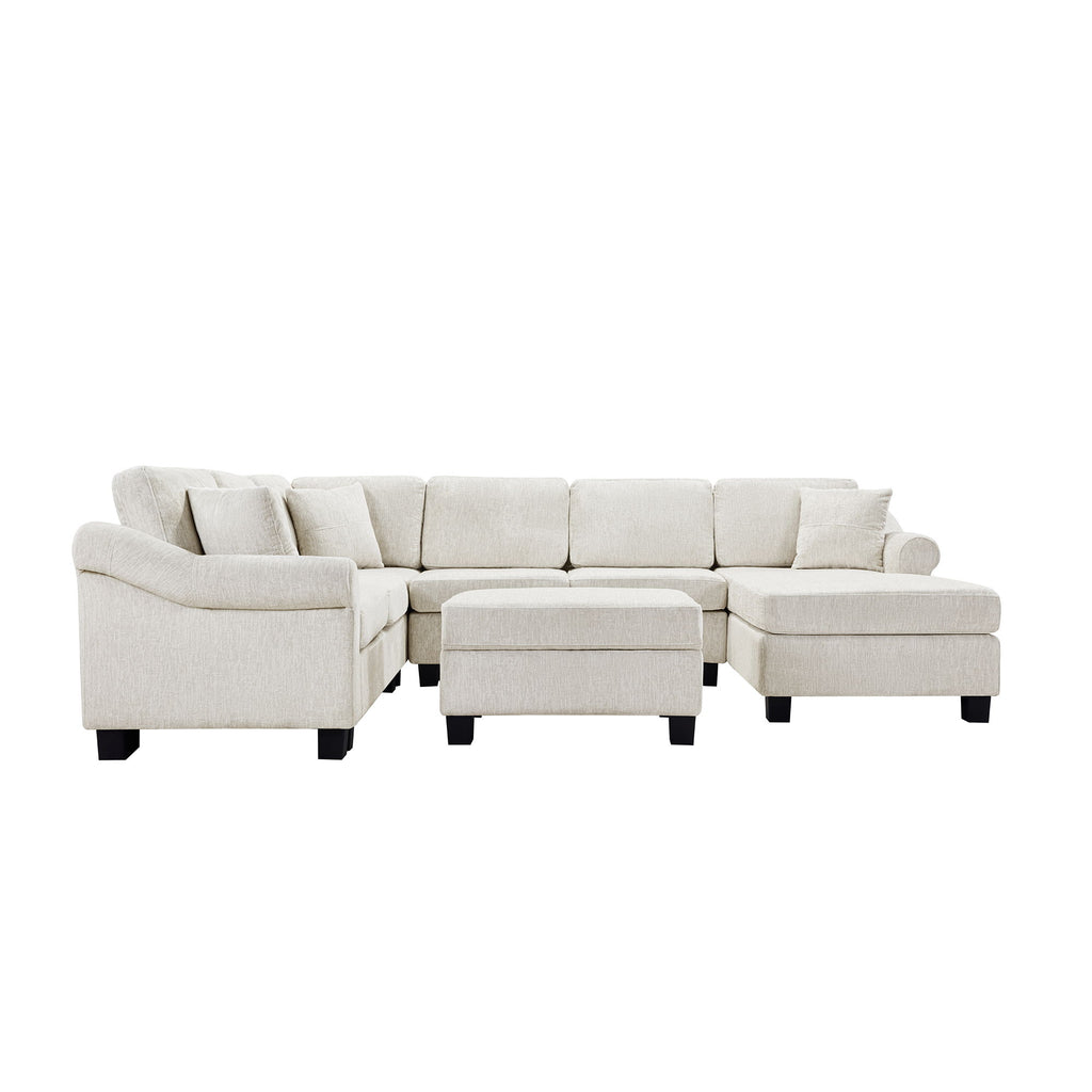 Contemporary U Shaped Sectional Sofa With Movable Storage Ottoman - White