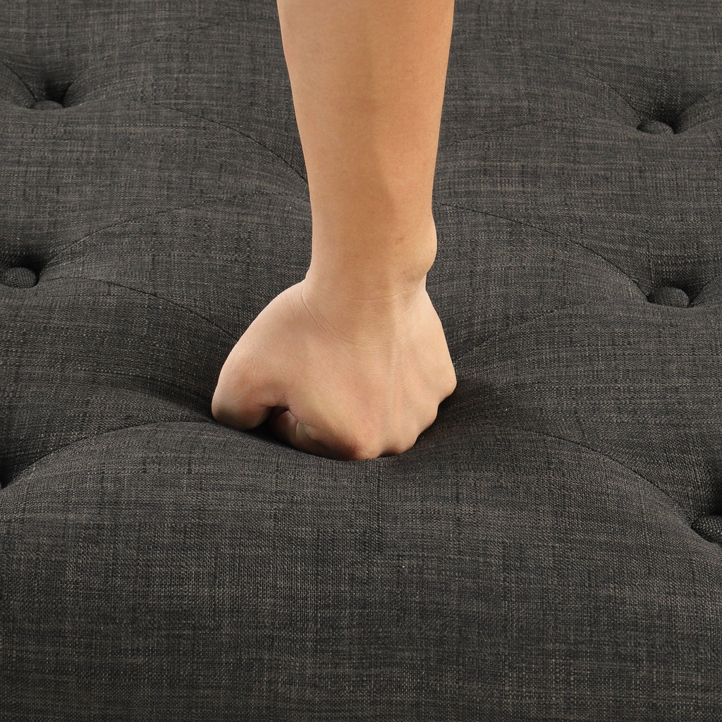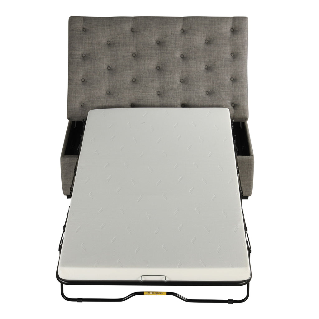 Convertible Ottoman Sleeper With Memory Mattress And Tufted Design, Folding Sofa Bed - Dark Gray Linen