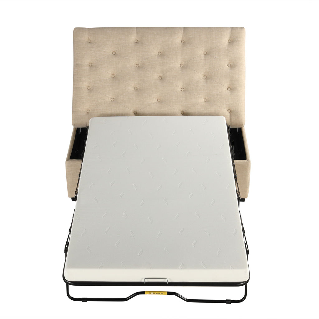 Convertible Folding Sofa Bed Ottoman With Memory Mattress And Tufted Design - Beige