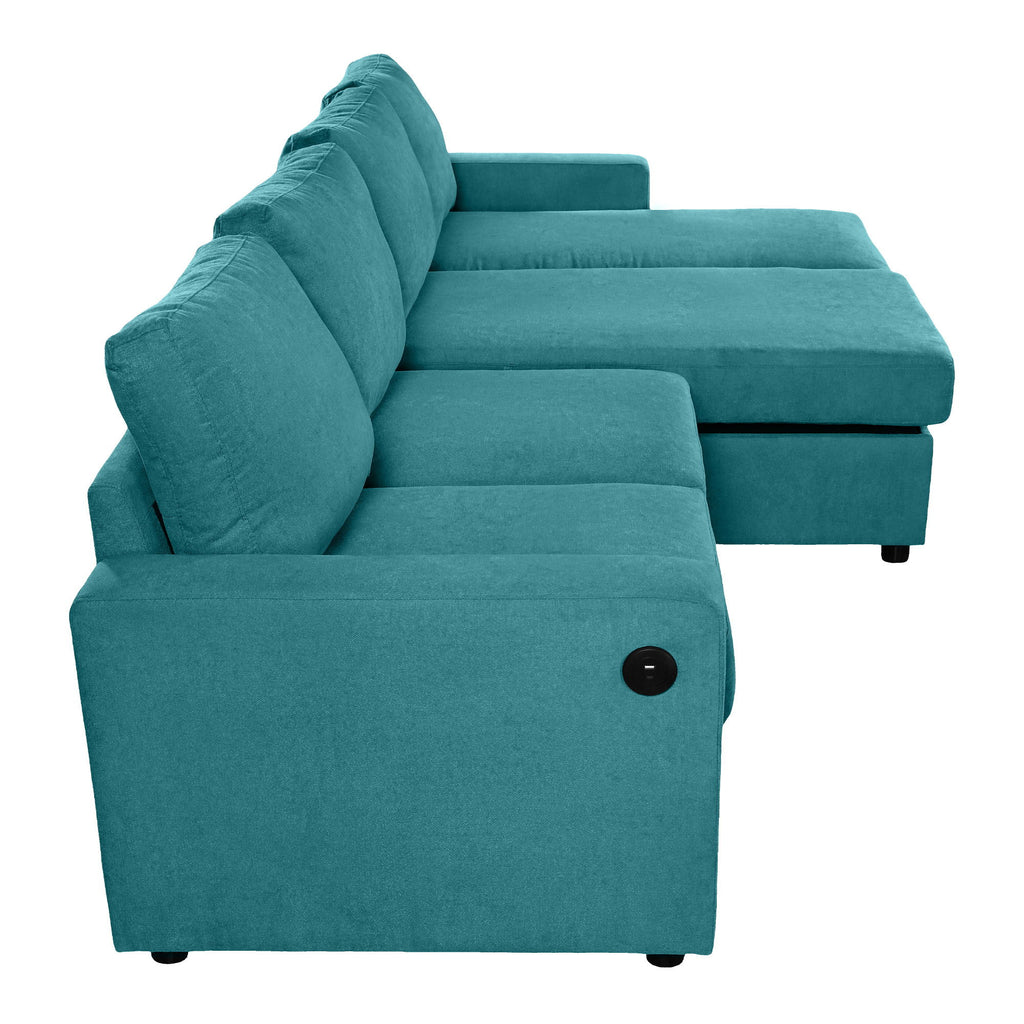 Convertible U Shaped Sectional Sofa With Storage Chaise Lounges & USB Ports - Teal