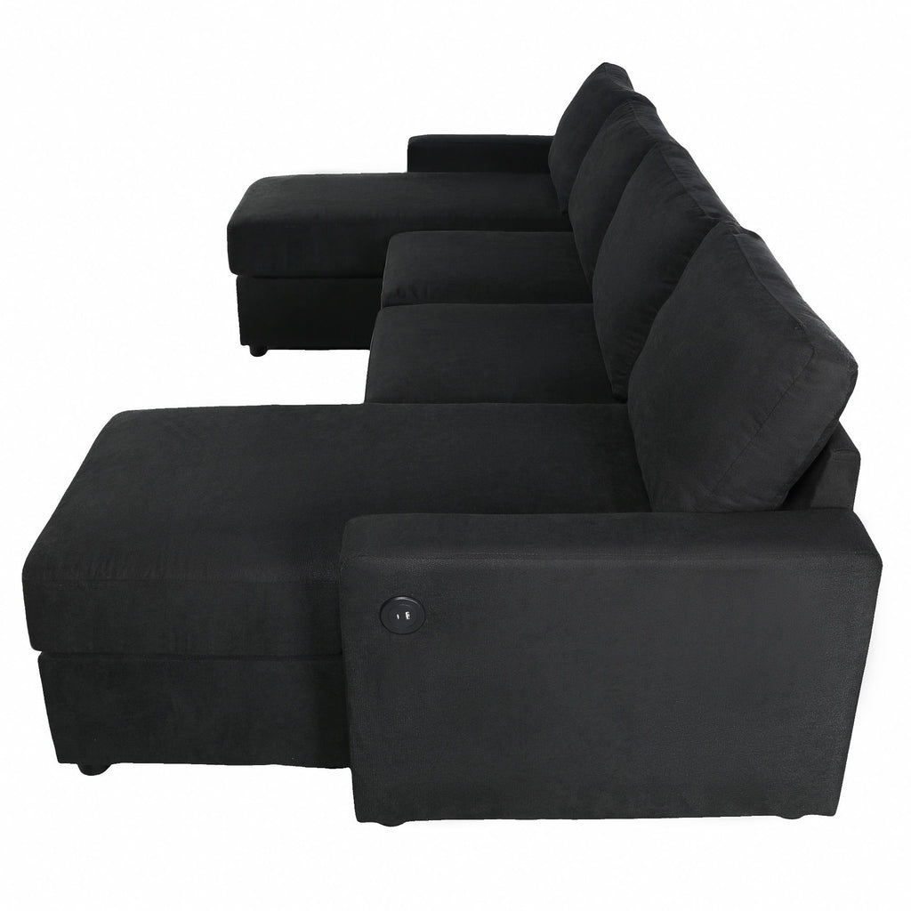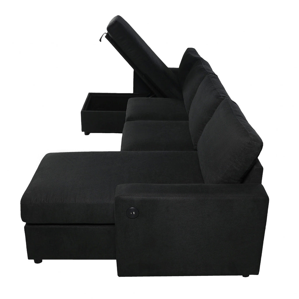 Convertible U Shaped Sectional Sofa With Storage Chaise Lounges And USB Ports - Black