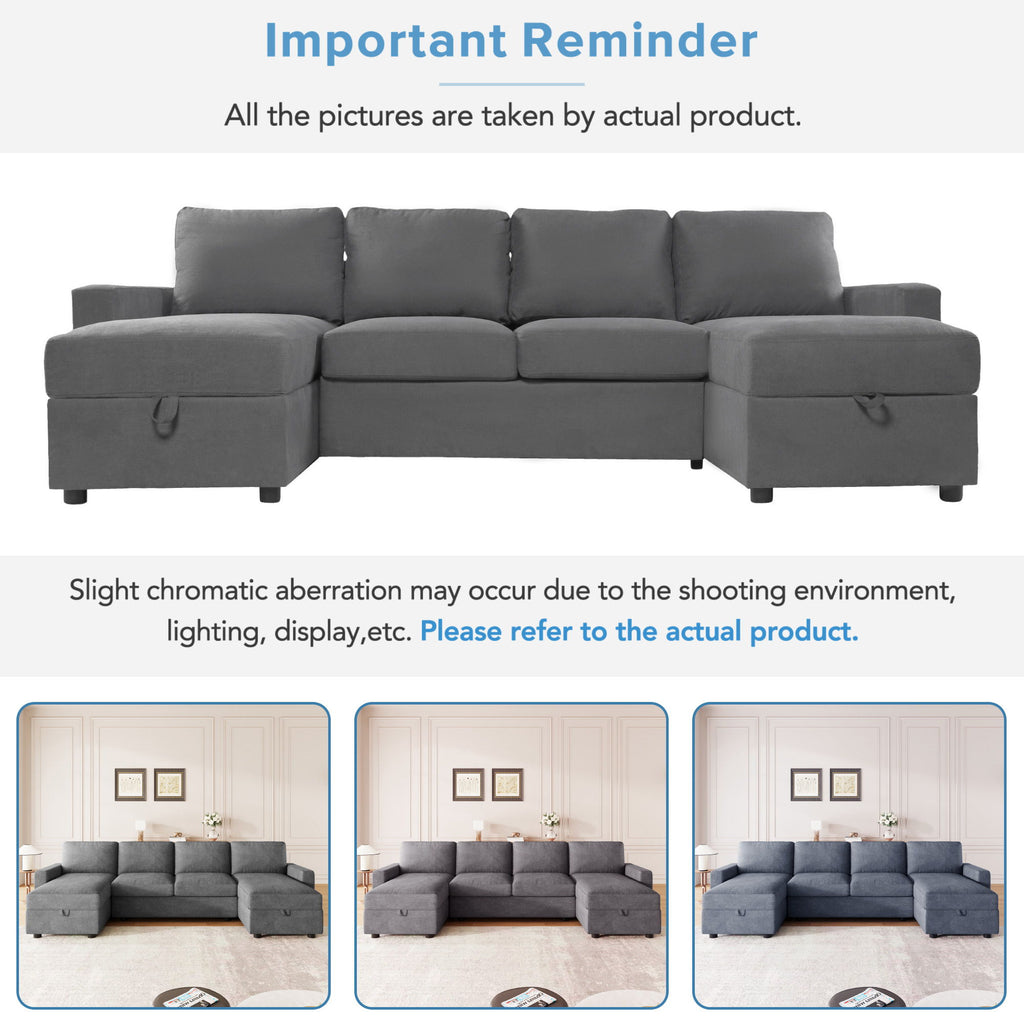 Modern Convertible Sectional Sofa With Storage Chaise Lounges And USB Ports - Dark Gray
