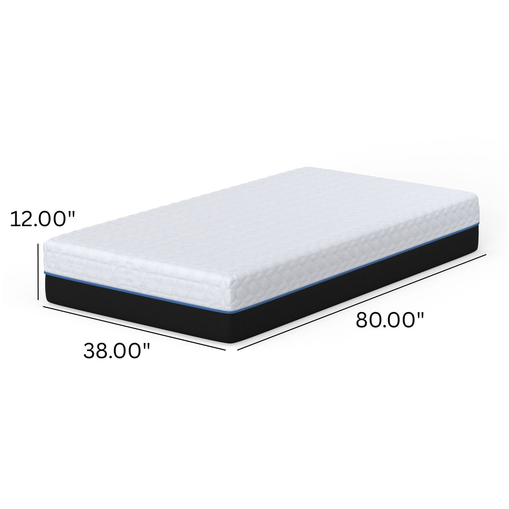 Copper Lux - 12" Twin Long Soft Memory Foam Mattress With Phase Change Cooling Fabric - White / Gray
