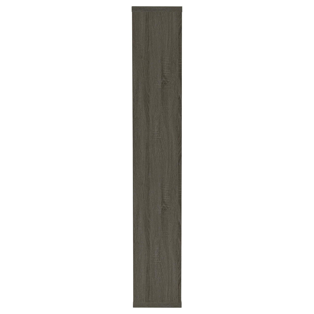 A whimsical silhouette captures attention as it offers essential space for display. This fun bookcase presents a puzzle-like profile with exceptional charm. Ten shelves in a variety of configurations provide plenty of room to show off decor and photographs, as well as books and planted greenery. Enjoy a sleek weathered grey finish that enhances its contemporary creds. This modern bookcase makes an excellent companion to home office decor.