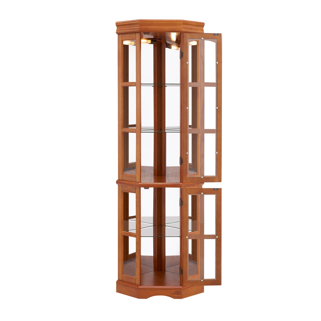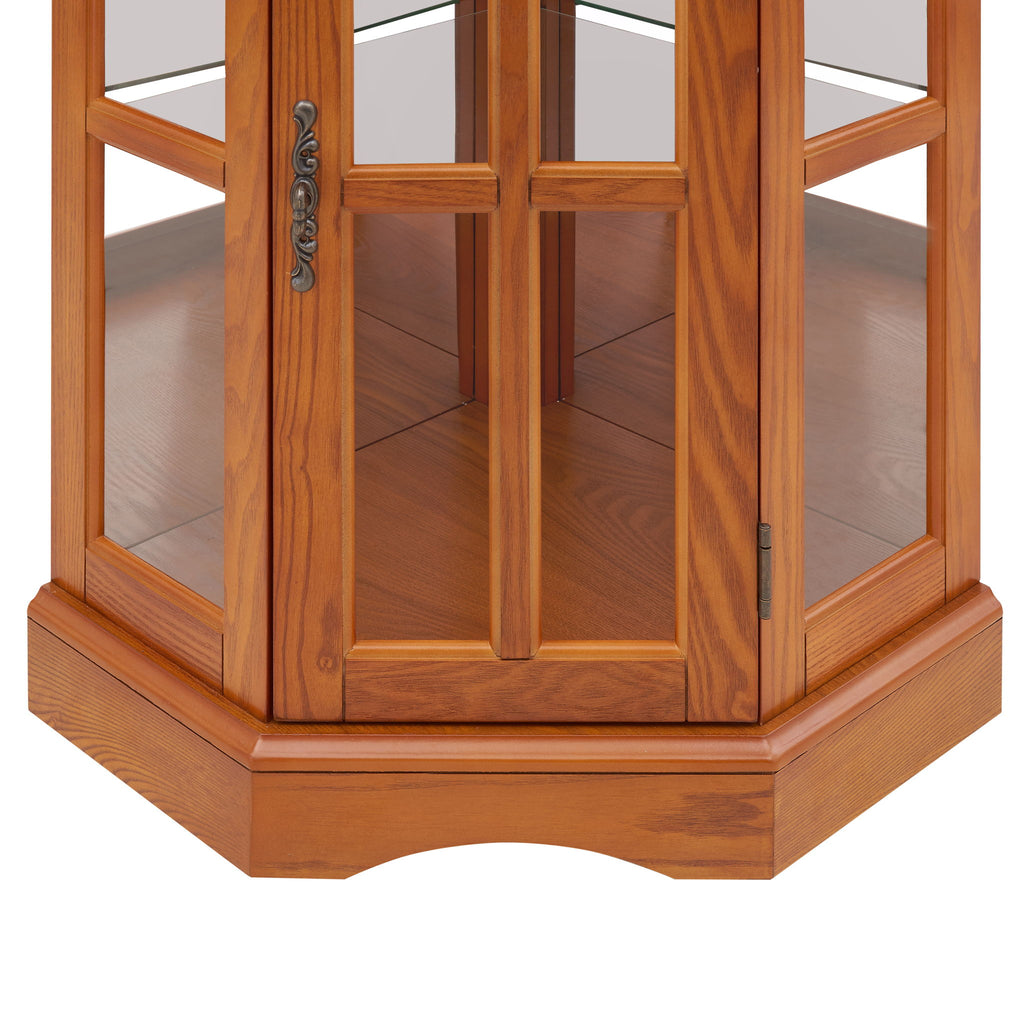 Corner Curio Cabinet With 5 Shelves And Lighting System (E26 Light Bulb Not Included) - Oak