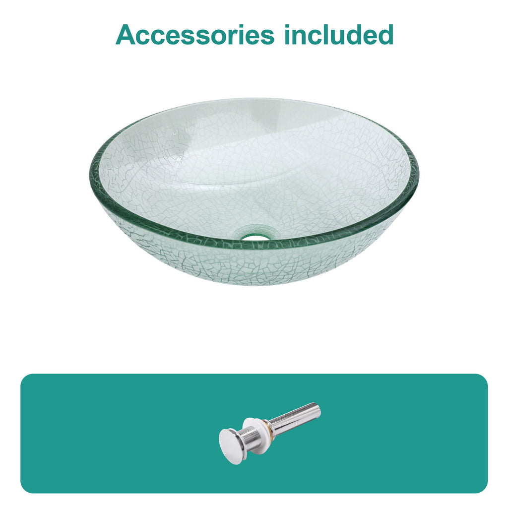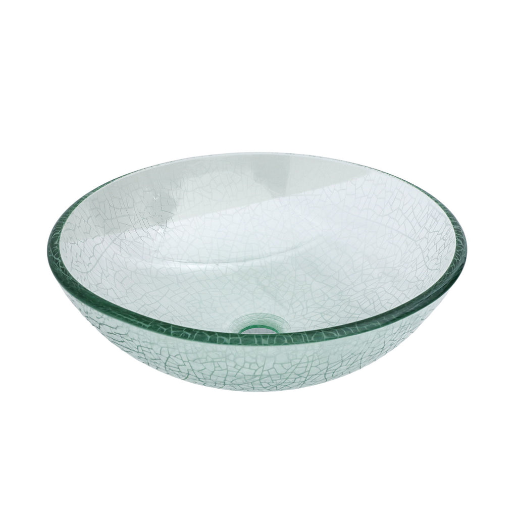 Crackle Vessel Sink, Round Bowl With Pop Up Drain - Clear