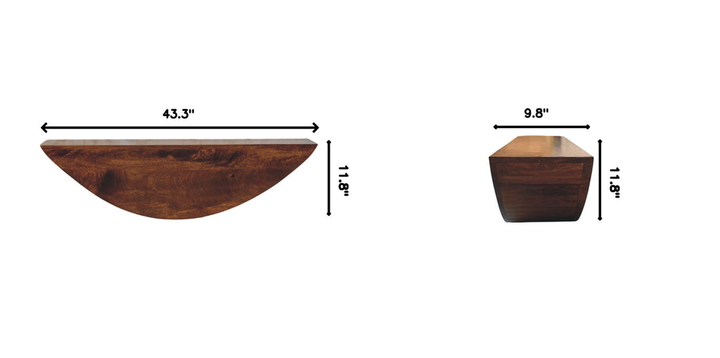 - Wall Shelf Solid Wood Crescent Floating Artisan Furniture - Introduce an elegant statement to your wall space with this crescent-shaped floating shelf, handcrafted from 100% Solid Mango Wood in a rich Chestnut finish. The sleek, curved design combines contemporary style with timeless craftsmanship, making it ideal for showcasing decorative items, small plants, or books. Its compact size and unique shape allow it to fit seamlessly in entryways, living rooms, or bedrooms, adding warmth and character to any interior. A perfect blend of functionality and aesthetic appeal, this handmade sustainable piece elevates your decor effortlessly.