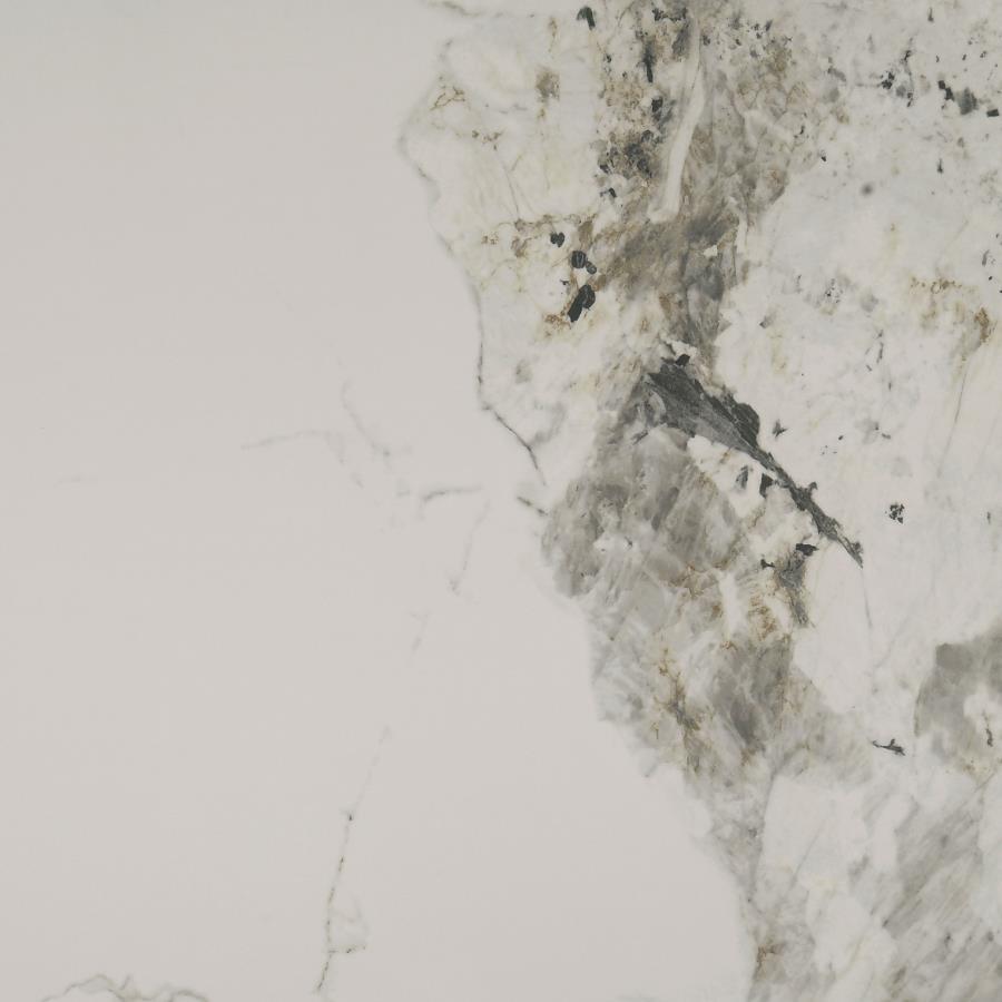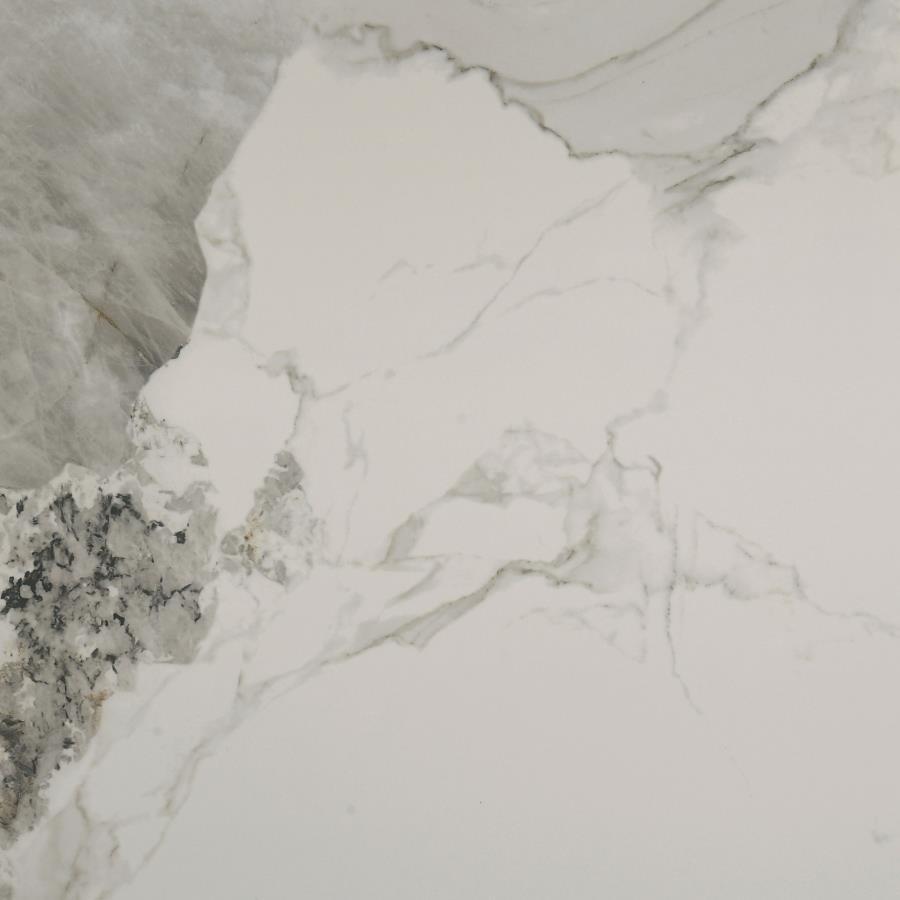This mid-century inspired dining table blends sculptural elegance with modern innovation. The rectangular tabletop features a recessed ceramic inlay with natural marbling in tones of off white, gray, and amber brown, resistant to heat and stains with an impermeable, easy-clean surface. A softly curved solid wood frame in weathered natural finish surrounds the top, supported by angular legs with slatted stretchers for added character. Crafted from rubberwood and durable composites, it seats six comfortably for everyday dining.