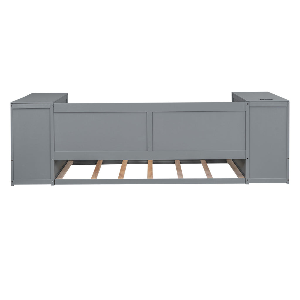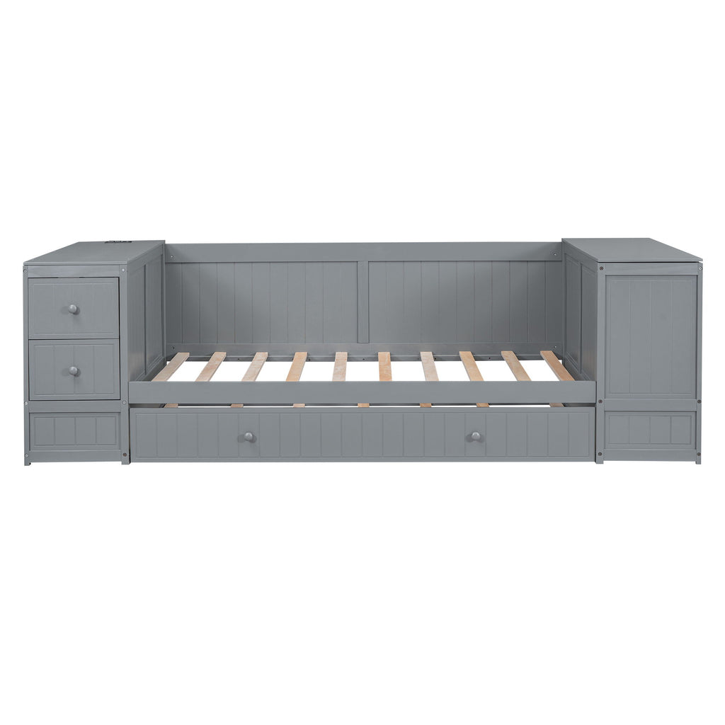 Twin Size Daybed With Storage Arms, Trundle, Charging Station - Gray