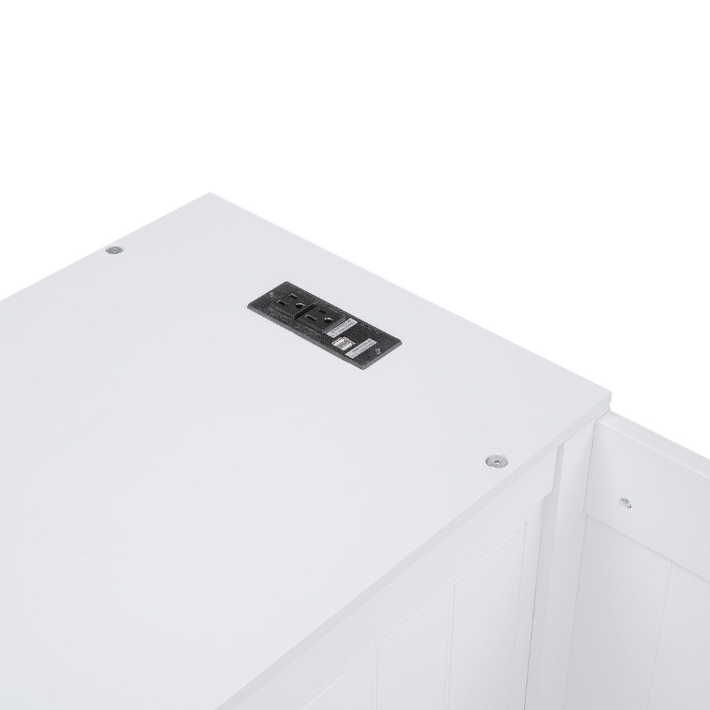 Twin Size Daybed With Storage Arms, Trundle And Charging Station - White