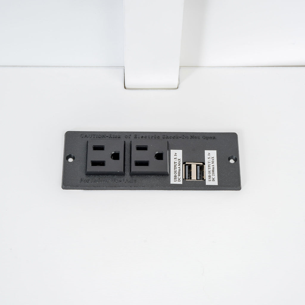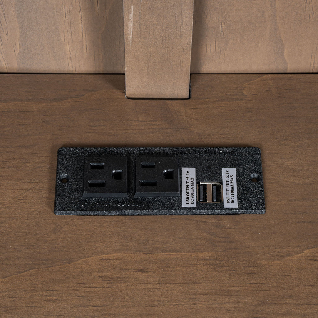 - Built-in Charging: USB port and outlet on shelf for convenient device charging
