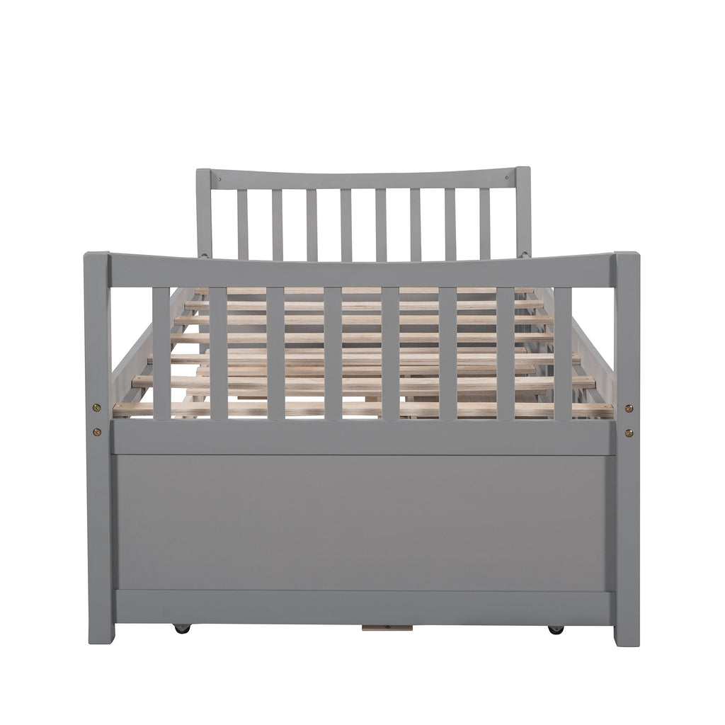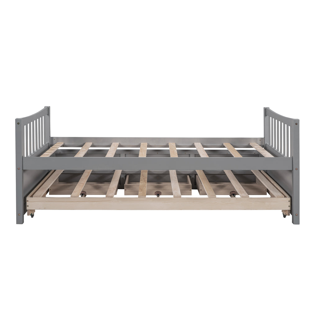 - v [Maximized space] The daybed with handy pull-out trundle and three functioning drawers takes up minimal space for the spontaneous sleepover guest. The trundle and drawers can easily be pulled in and out for maximum storage space, perfect for organizing anything from clothes and bed linens to toys and games. Such a versatile piece, bringing functionality, versatility, and style to your home, perfect for those who have lots of visitors.