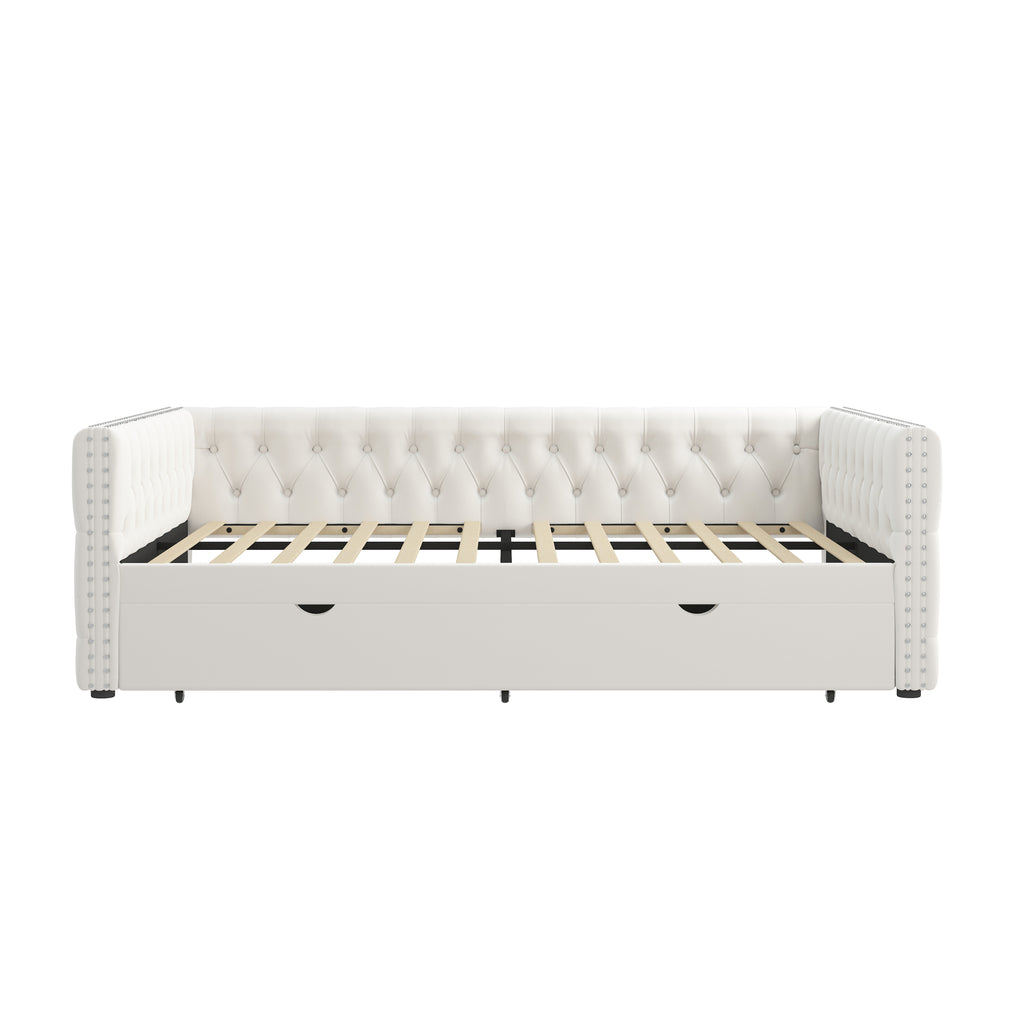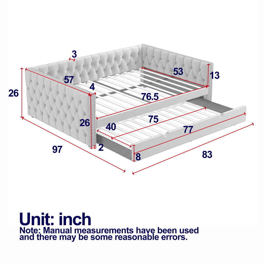 - [Full Size Daybed] The mid-century design of this piece is elegant and modern, adding a special atmosphere to your room.The diamond-tufted velvet backrest,nailhead trim is attached to the armrests, and Tufted Button give it a stylish and sophisticated look that will impress your guests.