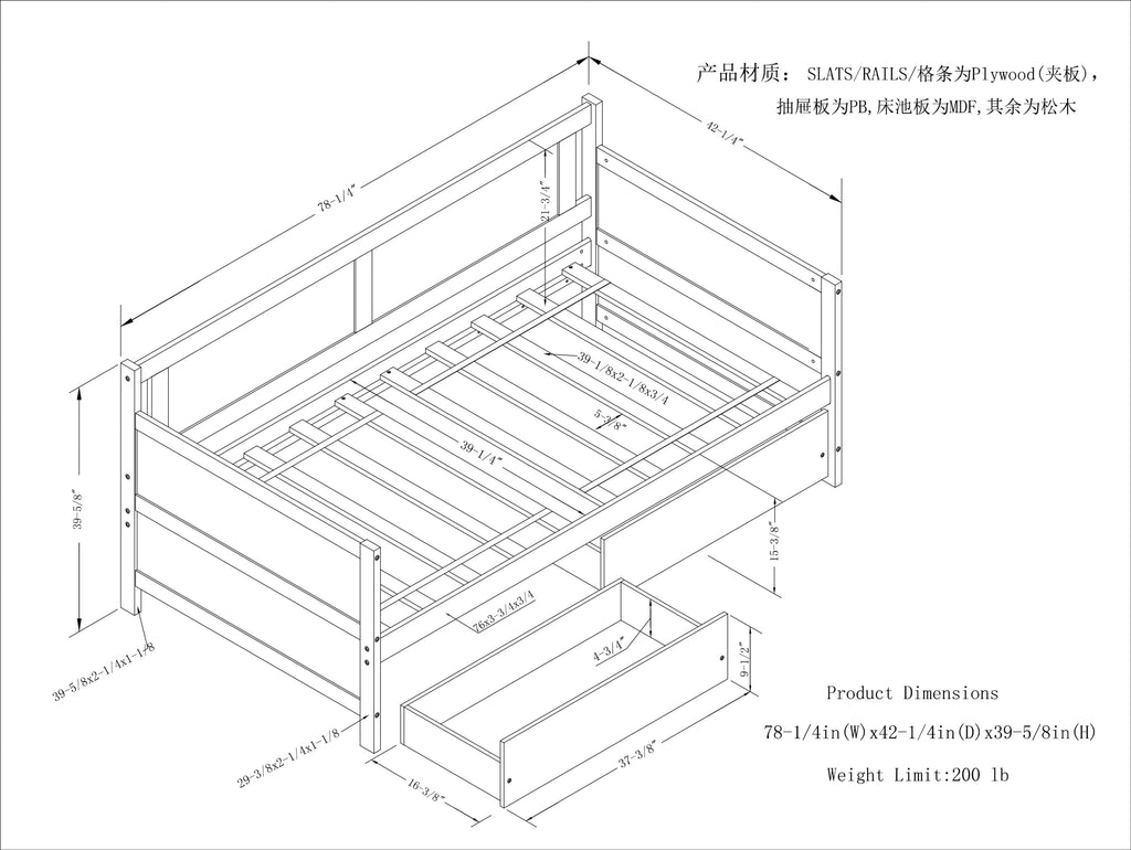 - #3 [Safety/ Quality] This bed is crafted from high-quality solid pine wood, providing lasting sturdiness and durability. The bed is constructed with firmly secured structure, forging solid stability that ensures supremely comfortable and supportive experience when users are sitting or sleeping restfully.