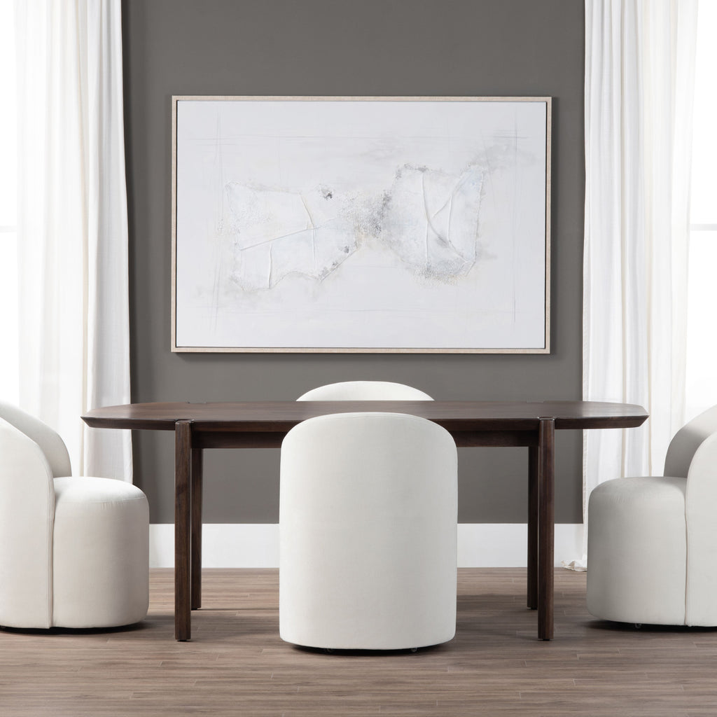 Let Deconstructed Layers by Crestview Collection redefine your space with its quiet power and architectural beauty. This high-modern piece features heavily textured white paint applied in sculptural, deliberate strokes upon a complementing white canvas. The paint forms a series of peaks, ridges, and flowing waves that move across the background with energy and intention. Framing the monochromatic artwork is a warm, natural wood frame that adds an organic element to the otherwise austere presentation. This thoughtful pairing enhances the artwork’s versatility, allowing it to blend effortlessly into a variety of modern, transitional, and minimalist interior styles. Whether hung as a standalone statement or as part of a curated wall display, it delivers a quiet confidence that defines high design.