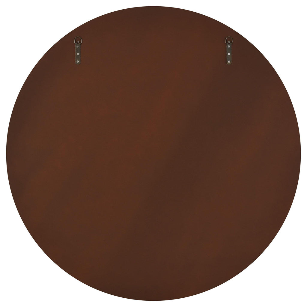 Offer artisan or industrial flair in any space with the textural flair of this round wall mirror. It's a modern design that features flat glass for easy reflectivity in any space. The round profile is accentuated with a MDF frame with fluting that creates a stylish textural effect. A rich brown finish plays up its casual character. Choose a spot over a tabletop or mantel to create contrast with its circular design.