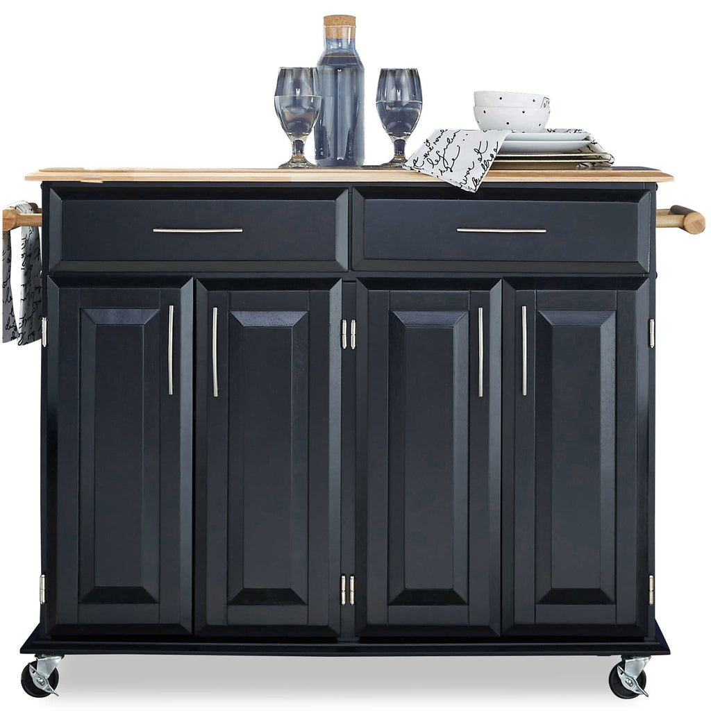 - Two utility drawers and two storage cabinets accommodate a variety of kitchen items.