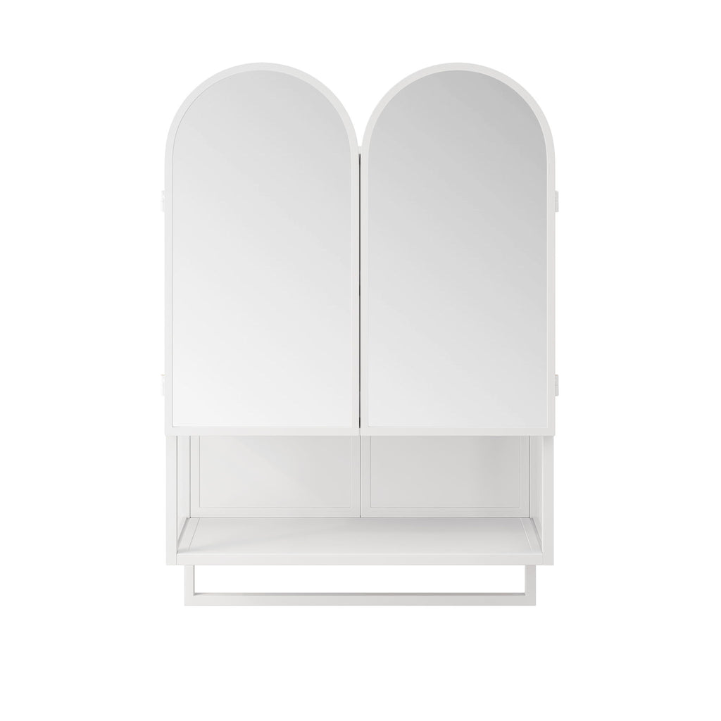 Double Arched Mirror Cabinet With 2 Doors, Wall Cabinet Featuring Adjustable Shelves And Towel Rack - White