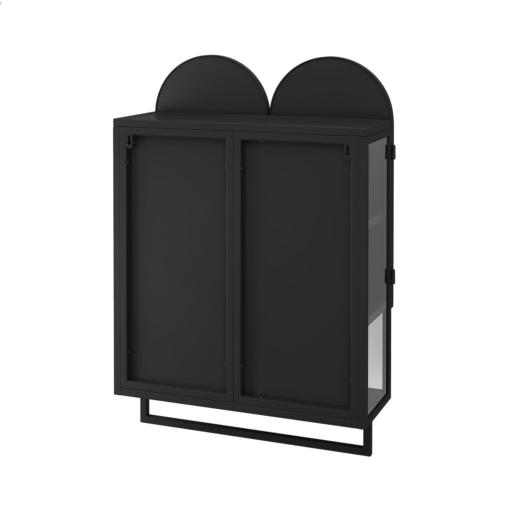 Double Arched Mirror Cabinet With 2 Doors, Wall Cabinet Featuring Adjustable Shelves And Towel Rack - Black