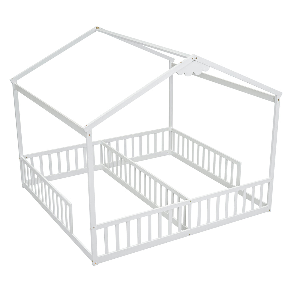 - #5[Easy-Assembly] This double twin house floor bed is delivered in one package, along with the manual instruction and full set of hardware necessary to guide you through the process of assembly, and the bed will be assembled smoothly. The mattresses (Not included) with a thickness less than 6 inches are suggested.