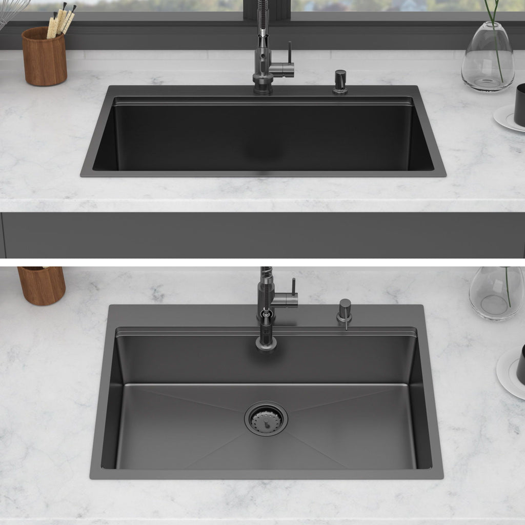 Drop In Kitchen Sink With Pull Out Faucet And Soap Dispenser, Single Bowl Topmount Sink - Gunmetal Black