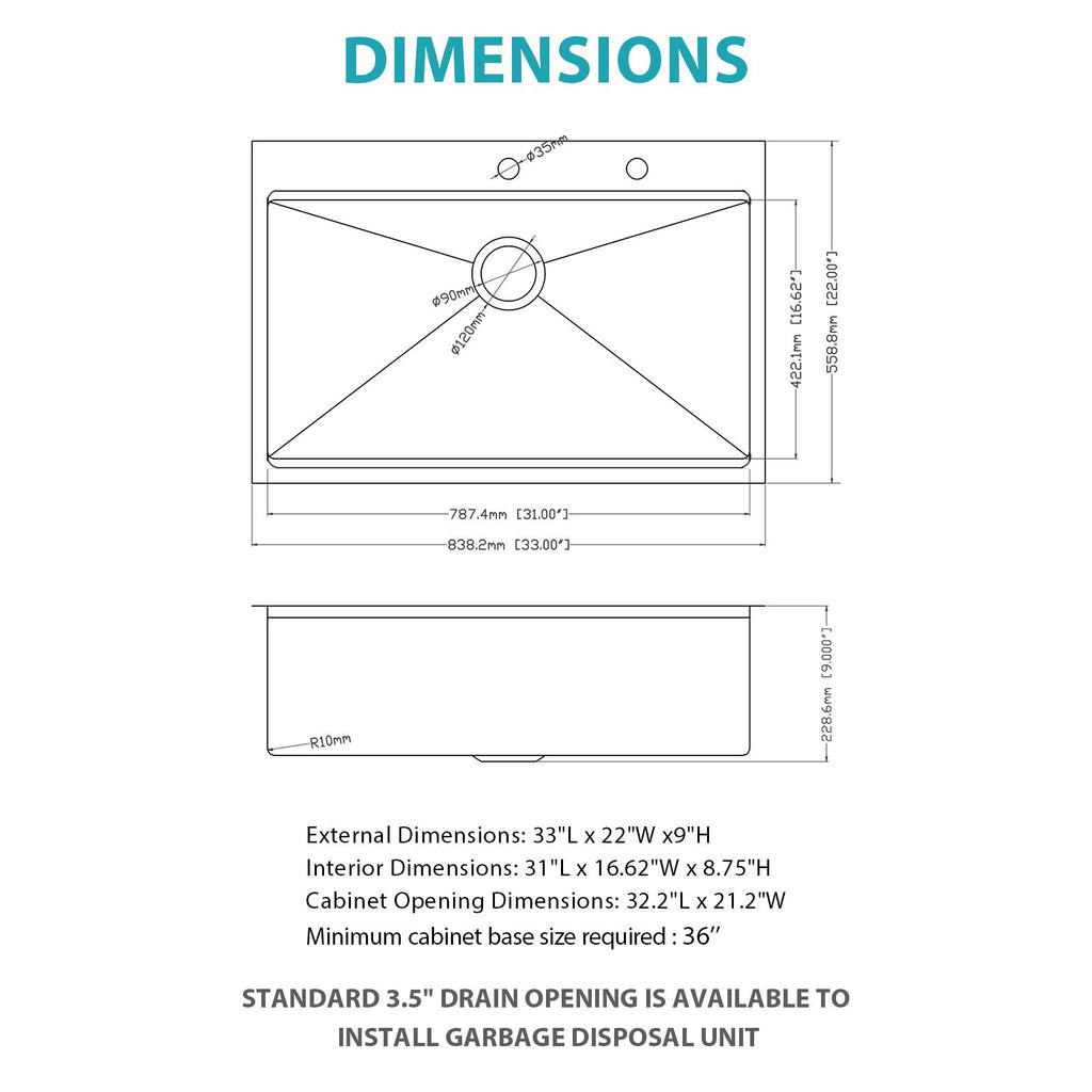 33.0"W x 22.0"D x 9.0"H - 22.88 lb