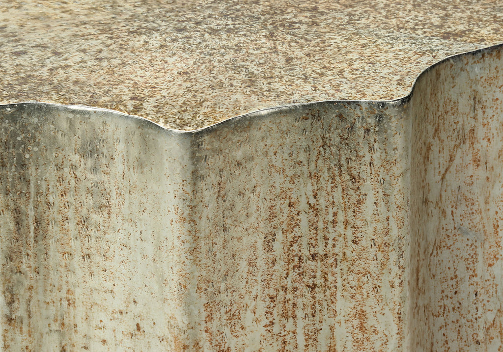 - Design and Finish: This drum table features a stylish scalloped design with a hammered texture, finished in an antique metal. It adds an eye-catching boho glamour to any living room or bedroom setting.