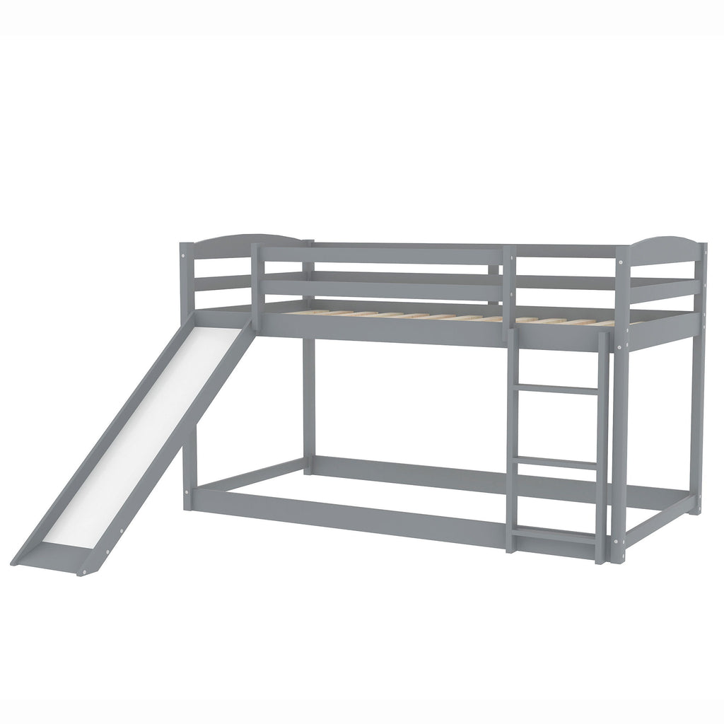 Twin Over Twin Bunk Bed, Convertible Slide And Ladder - Gray