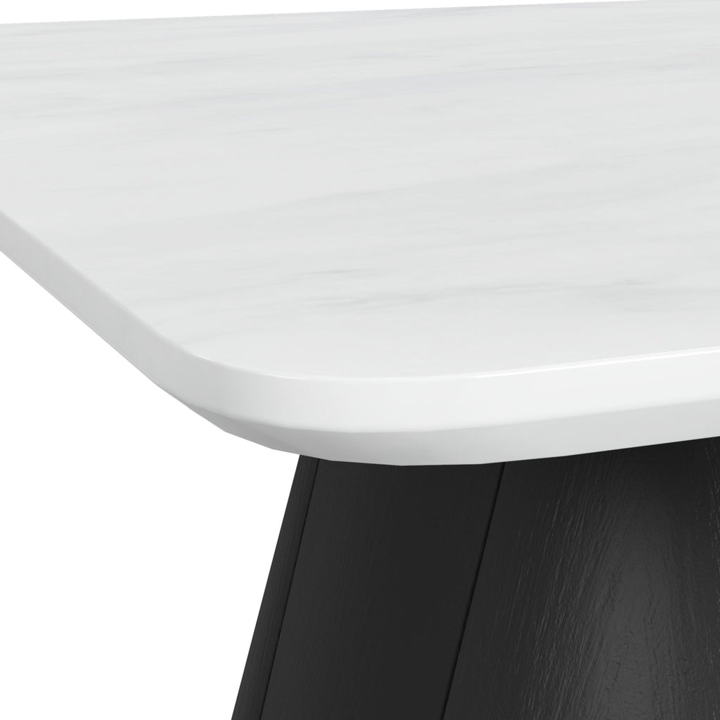 Add some modern aesthetic to your living space with the Edison Occasional End Table. It provides ample surface area for decorative items and daily essentials right at your side. With its sleek black pedestal base and white marble-like top, this piece exudes elegance and sophistication. Whether enjoying a cup of coffee or hosting a social gathering, the Edison Occasional End Table, also available in a coffee table size, is sure to elevate your home décor with some contemporary design.
