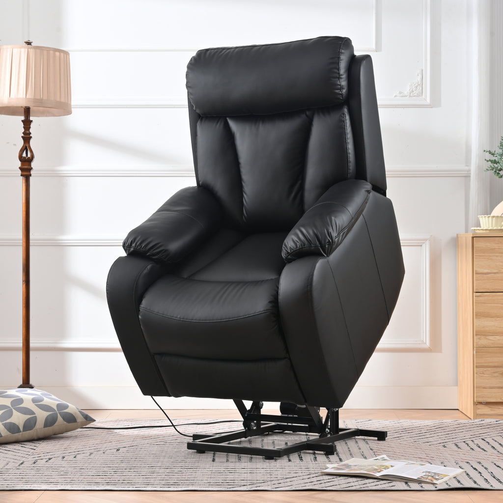 Electric Power Lift Recliner Chair for Elderly, PU Recliner Chair for Seniors, Home Theater Seating,Living Room Chair,Side Pocket, Remote Control (Black PU)
