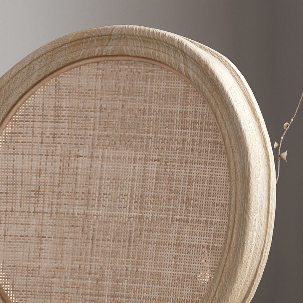 Elegant Dining Chair Set With Cane And Fabric Upholstery - Beige