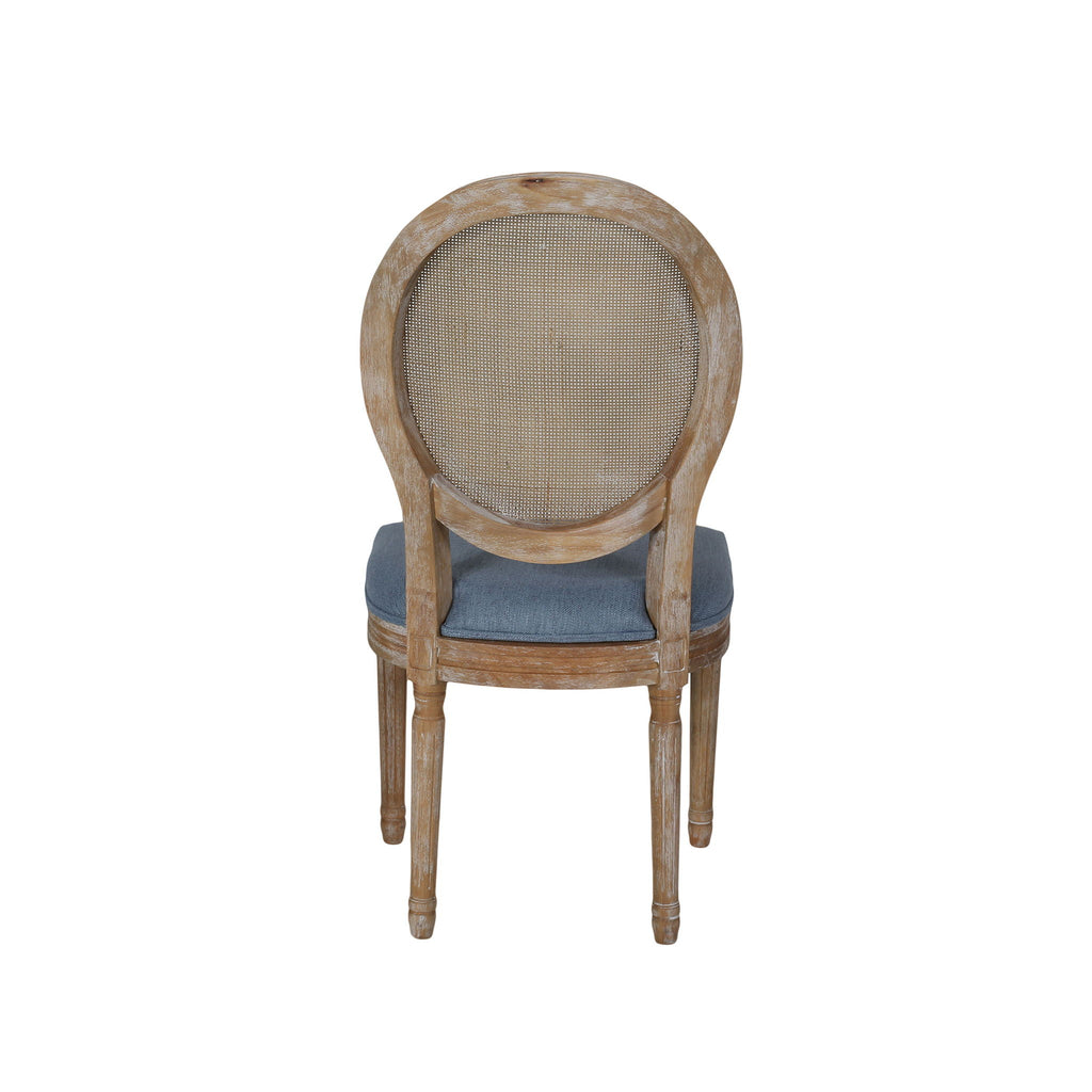 Elegant Dining Chair Set With Cane And Fabric Upholstery - Light Blue