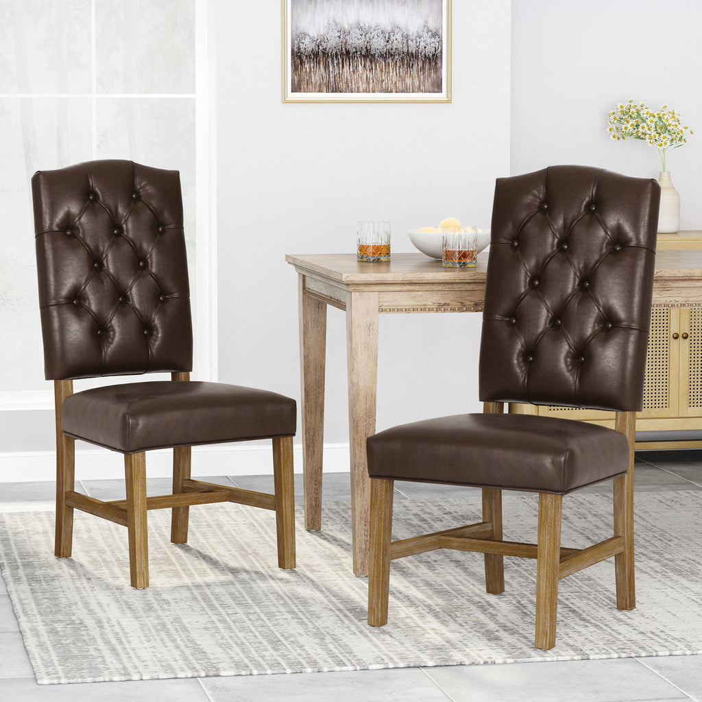 Elegant Dining Chair With Button Tufted Design - Dark Brown