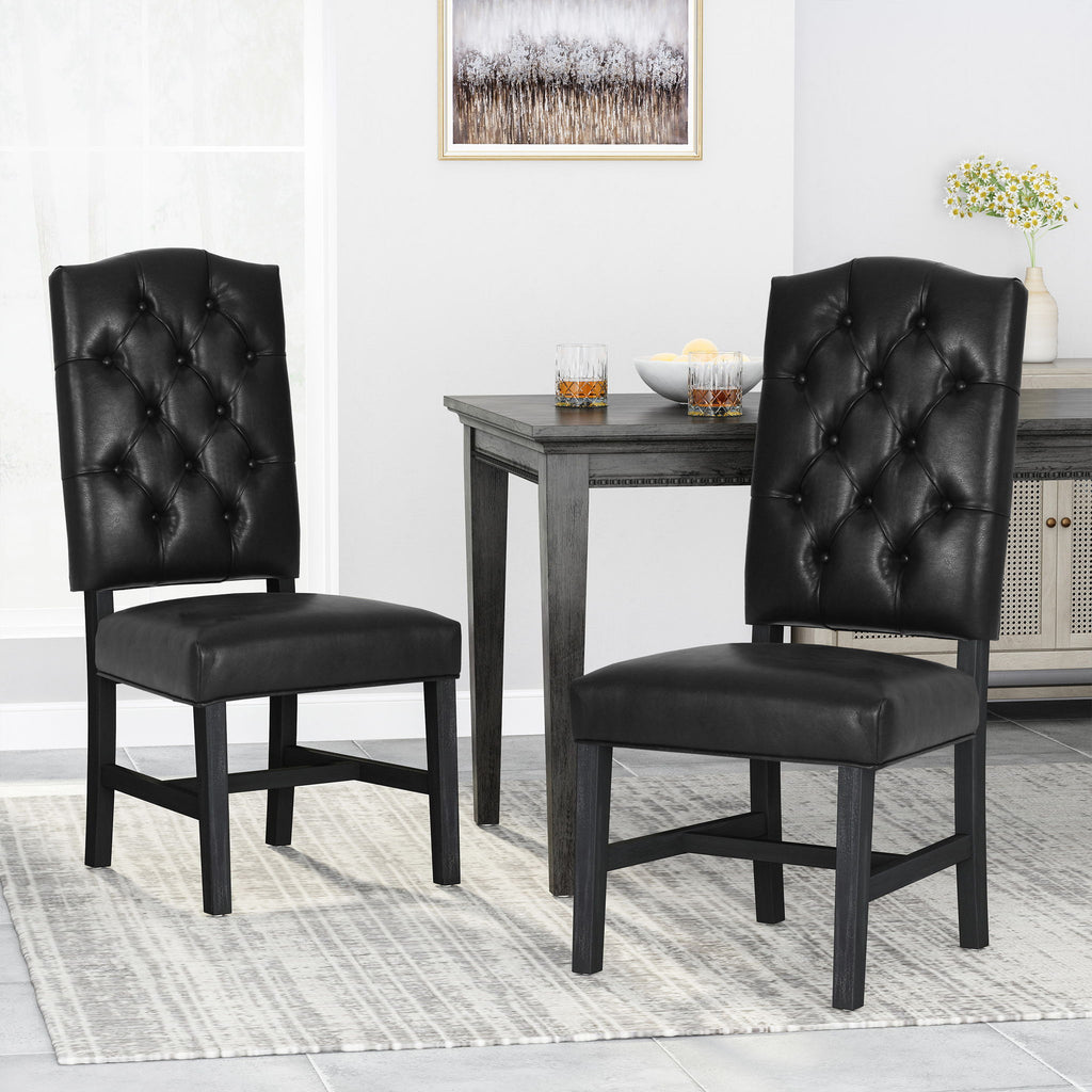 Minimalist Elegance Dining Chair With Button Tufted Design - Black