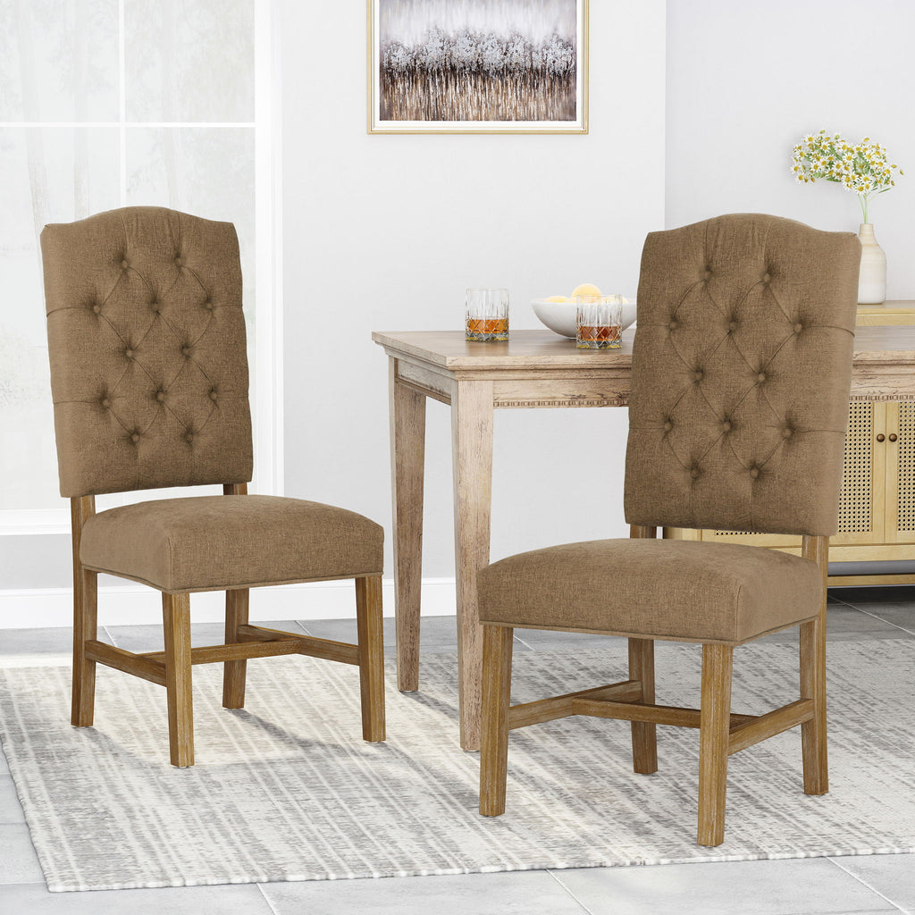 Stylish Fabric Dining Chair With Button Tufted Design And Weathered Frame - Beige