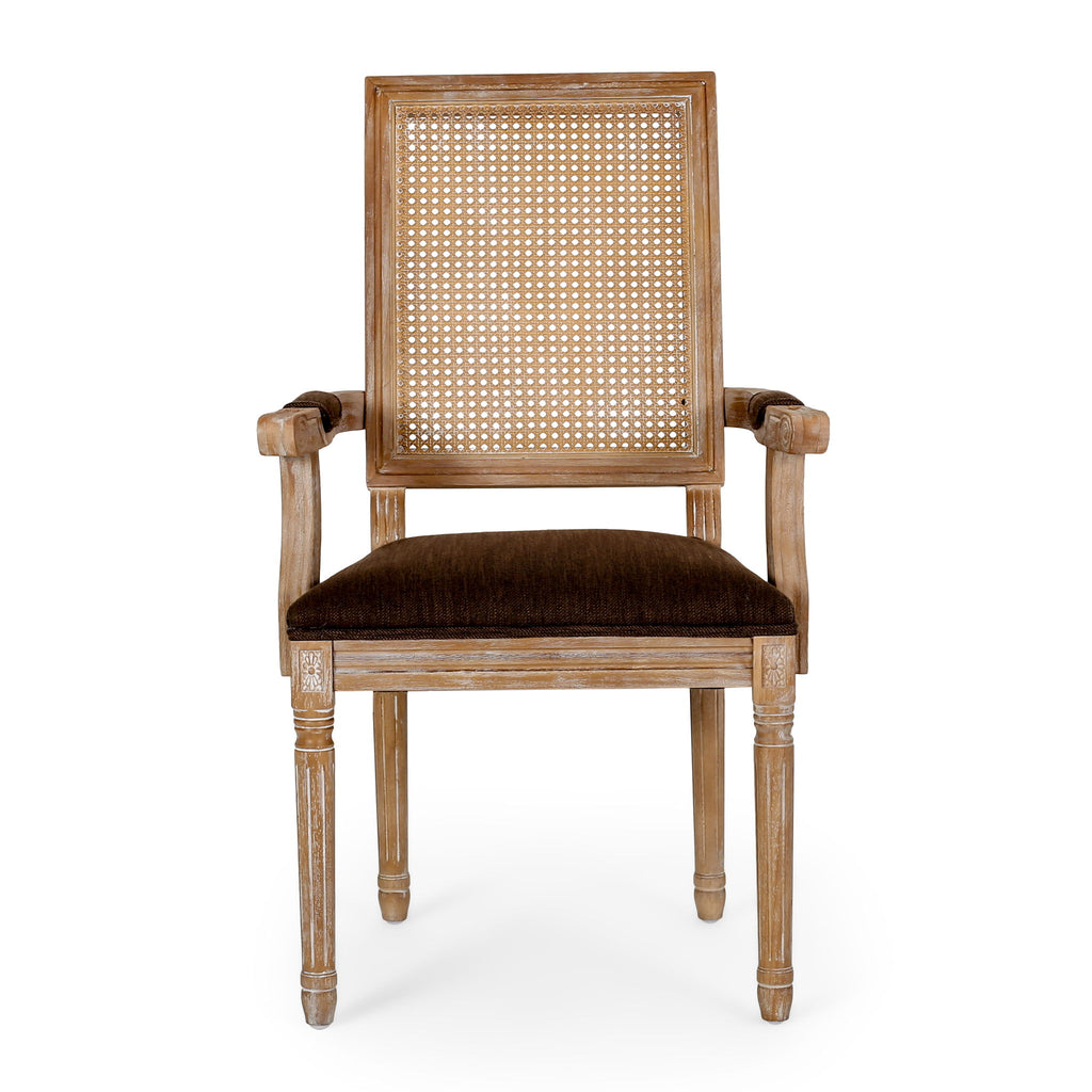 Upholstered Dining Chair With Cane Backrest (Set of 2) - Brown