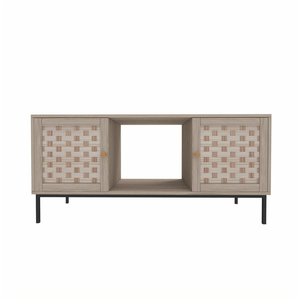 Elegant Veener Weaving Design Coffee Table With 4 Sliding Doors - Natural Wood