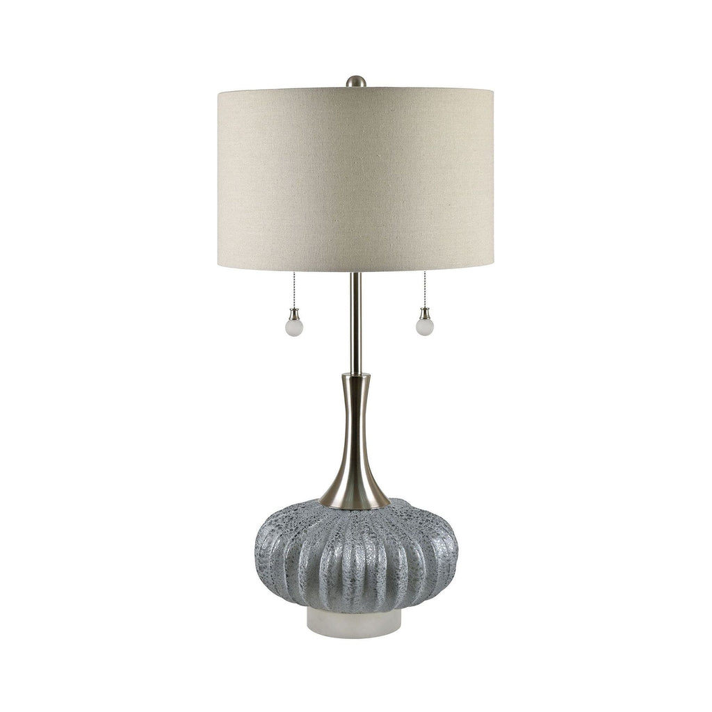 Add a touch of elegance to your home with the Crestview Collection Ellsworth Table Lamp, featuring artisanal glass in a shimmery blue finish. Brushed stainless accents and a textured linen shade complete the sophisticated look. This lamp seamlessly blends contemporary design with artisanal craftsmanship, perfect for any refined space.