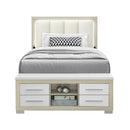 Emilia - Panel Queen Bedroom 5 Piece Set With Storage And LED Lighting - Natural / White