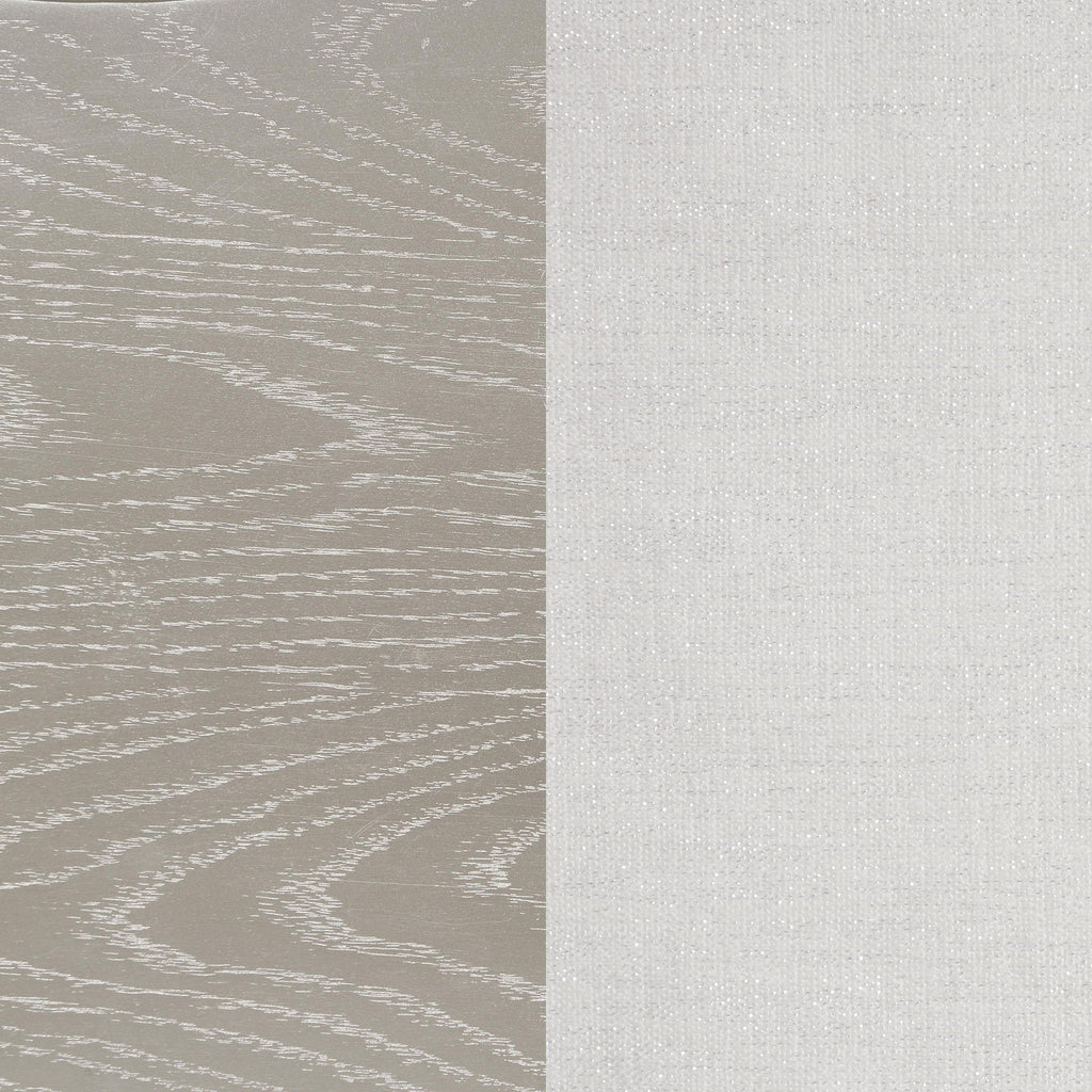 Elevate your restful bedroom retreat with this elegant, glam platform bed. A curvy double arch headboard and footboard are designed with a padded insert of flared channel tufting that lends an eye-catching motif. Each padded piece is upholstered in a soft, ivory fabric that lends a neutral color palette. A silver oak finished frame gives off a chic pearlescent look and feel, accented by glittering panels that rest flush between the crown molding and trim details throughout. Slender, tapered legs offer a subtle lift, allowing for extra storage beneath.